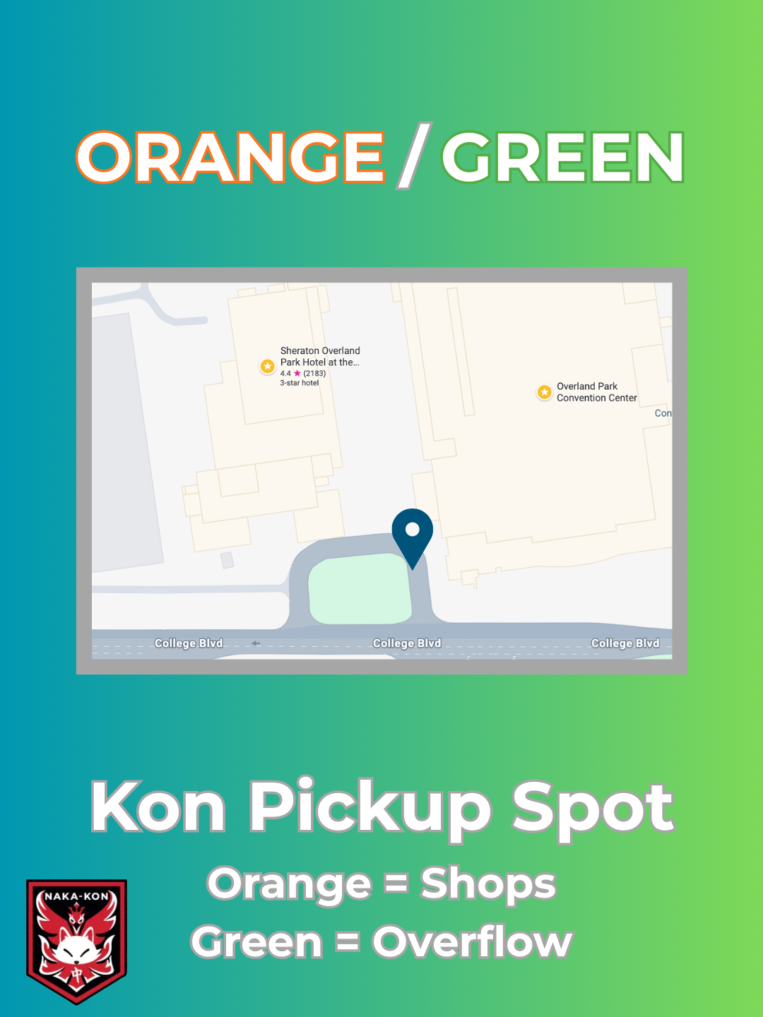 Naka-Kon is happy to announce the return of complimentary shuttle buses for attendees between the hotels and overflow lot and a route to local restaurants and shops. Please see the map for route details and schedule, and check Visit Overland Park's Naka-Kon page for the complete list of restaurants and destinations along the route. Shuttle bus staff will be stationed near the circle drive on the upper level of the convention center if you have any questions.